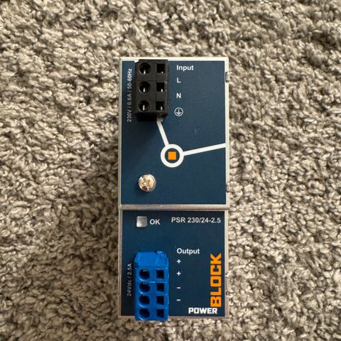 Myydään kuvan mukainen Virtalähde 24V, 50mA, IP44. (506)