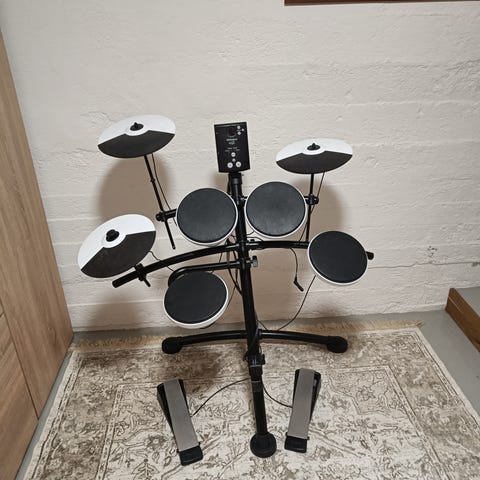 Roland V-Drums TD-1K sähkö-rumpusetti musta väri. Sisältää rumpusetin, iskunapit, symbaalit ja rumpukapulat. Sopii sähköiseen rumpujen harjoitteluun. Pellit on ottaneet soitossa iskua. Mukaan saa kärsineen penkin, jos tahtoo sen ottaa. Kapuloitakin löytyy varmaan useammat. Meillä soiteltu sisällä kuulokkeiden kanssa. Täysin toimivat ja suoraan käytöstä. Muuton alta myyn pois.