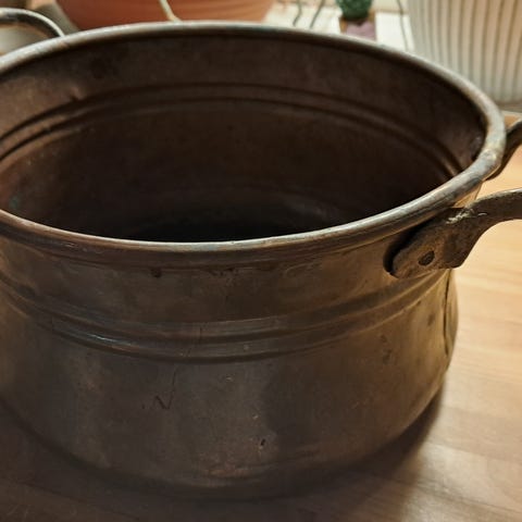 Tukevat kupariruukut, 13cm halkaisija, korkeus 9cm Toisen ruukun pohja tummentunut yhteensä 20€