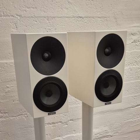 Kuvan siistikuntoiset legendaariset Amphion Argon jalustakaiuttimet.