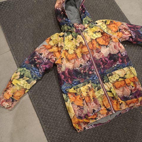 Toisen taskun vetoketju rikki ja kauluksessa kulumaa. (Katso kuvat.)