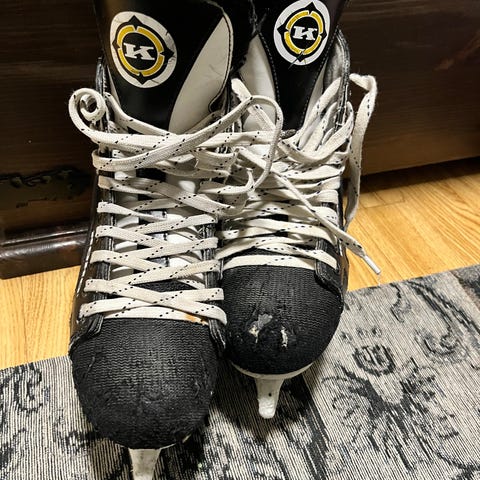 Yhdellä henkilöllä käytössä olleet hokkarit kokoa 8 (42). Toisen luistimen kärjessä kankaassa pieni rokama ja toisesta terästä löysin pienen ruostejäljen, joka teroituksessa lähtee kyllä pois.