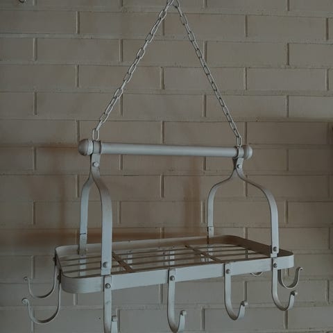 Myydään upea rautainen ripustettava kattilateline 12koukulla.kork.ketjun kanssa 80cm pit.55cm ja lev.30cm