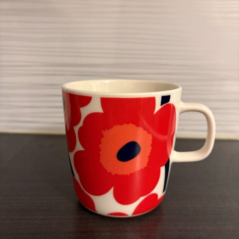 Marimekko Unikko muki, jossa on mustavalkoinen kukkakuosi. 4dl