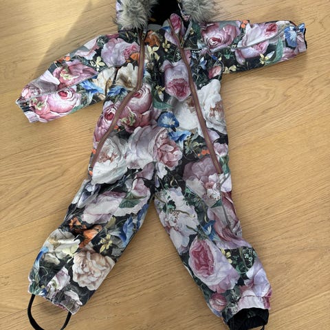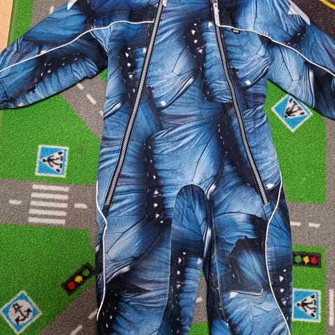 Hyvässä kunnossa oleva haalari, meillä ei ainakaan palellut kovillakaan pakkasilla. Pinnassa hieman kulumaa, mutta uppoutuu väriin. Ei reikiä.