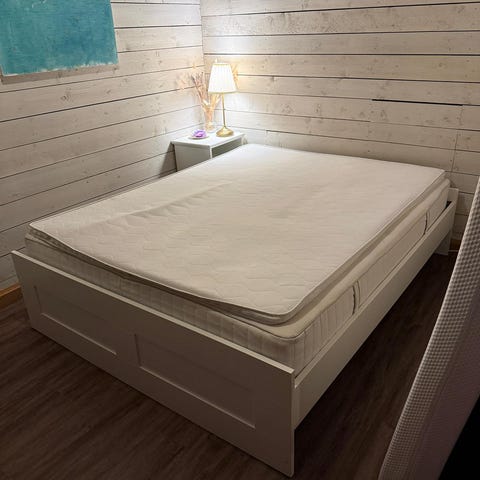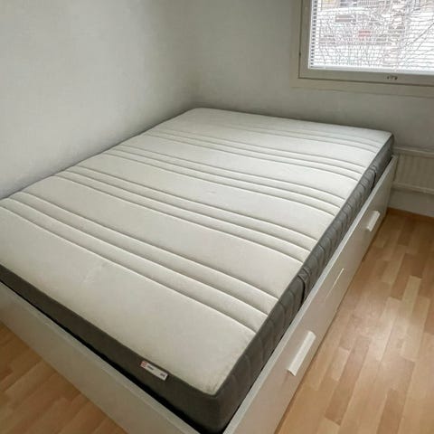 Siistissä kunnossa oleva Ikean Brimnes parisänky, leveys 160 cm. Sänky on purettu, laatikot kokonaisina. Laatikoista puuttuu vetimet, ja osista voi puuttua jokunen ruuvi. Irrallisen pehmustetun sängynpäädyn saa halutessaan kaupan päälle. Sälepohja ei kuulu kauppaan. Vain nouto.