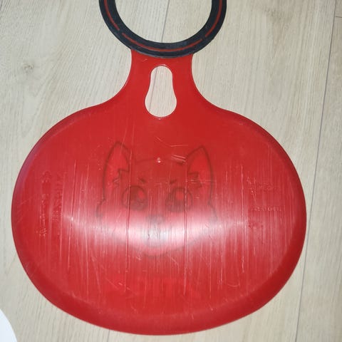 Stiga snowrocket -tyylinen liukuri. Pohjassa yksi pieni viilto, kulkee silti ihan hyvin.