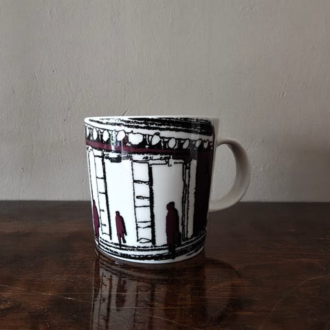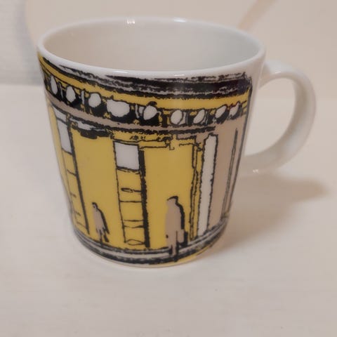 Käyttämätön Arabian Eduskunta Teema muki alkuperäisessä laatikossaan.