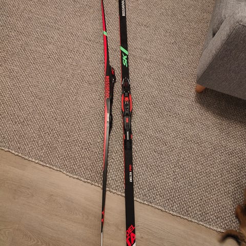 Rossingnol xymax luistelusukset ja Rissingnol z-6 monot juniorihiihtäjälle. Suksien pituus 170 cm ja monojen koko 38.