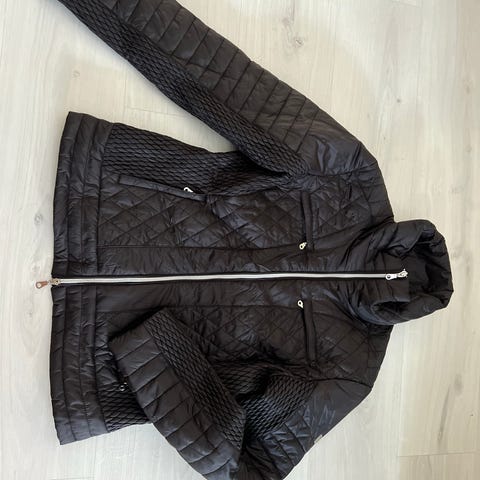 Horze Equestrian ratsastustakki ruskeassa värissä, koko 38. Takissa on vetoketjullinen etuosa, kaksi etutaskua, hupullinen malli ja heijastinnauhat hihoissa.