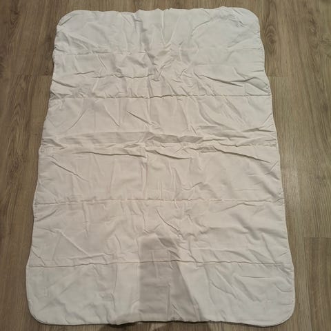 Hemtexin valkoinen kuitupeitto vauvalle koko 115x140cm ja 2 siihen sopivat pussilakanat (pinkkivalkoraitainen ja vaaleanpunainen apinakuvioinen, molempiin pussilakanoihin myös tyynyliina)