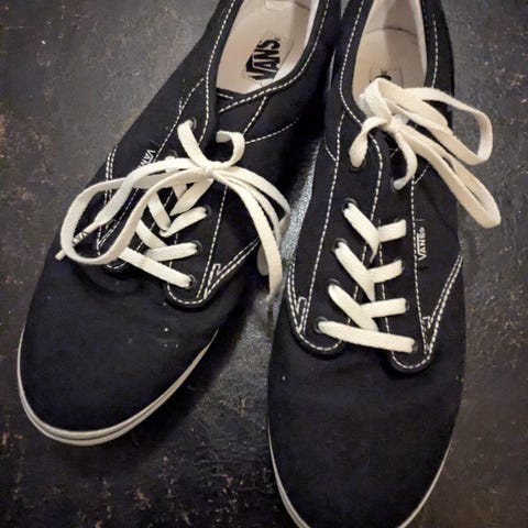 Katso viimeinen kuva: nilkan reunassa oleva kangas hieman kulunut/vaurioitunut, mutta ei vaikuta kengän käyttöön.