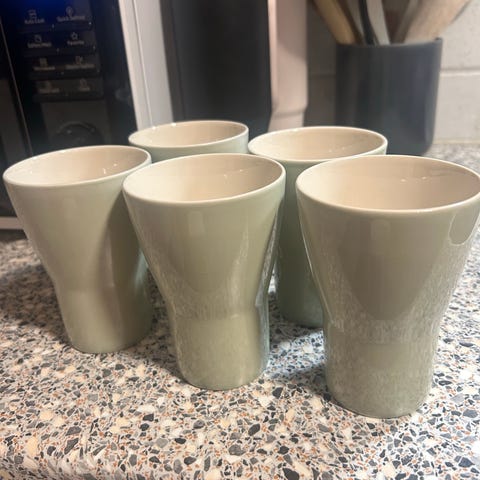 Myydään kolme kappaletta Pentikin Valo-sarjan mukeja. Nämä ovat valkoisia, kotimaista Posiolla valmistettua keramiikkaa ja erittäin hyvässä kunnossa.