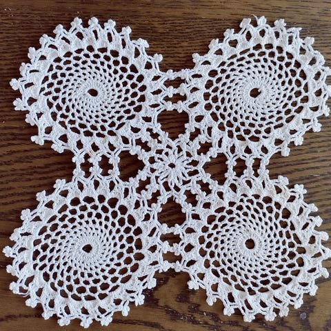 Suorakaiteen muotoinen, luonnonvalkoinen pieni liina. Koko n. 13 x 26 cm. Yhden, melko huomaamattoman tahran havaitsin (viimeinen kuva).