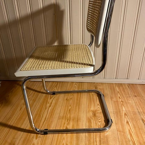 Rottinkiosat täysin ehjät ja istuimissakaan ei ole ollenkaan painaumia tai katkenneita punoksia. Ruosteettomat metalliset rungot ja siistit maalipinnat. MADE IN ITALY - merkinnät löytyy näiden venetsia tuolien pohjasta.