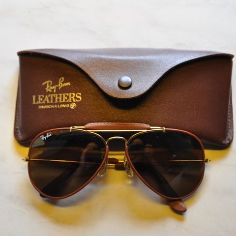 Myydään aidot vintage Ray-Ban Aviator Leathers -aurinkolasit, valmistaja Bausch & Lomb (USA).