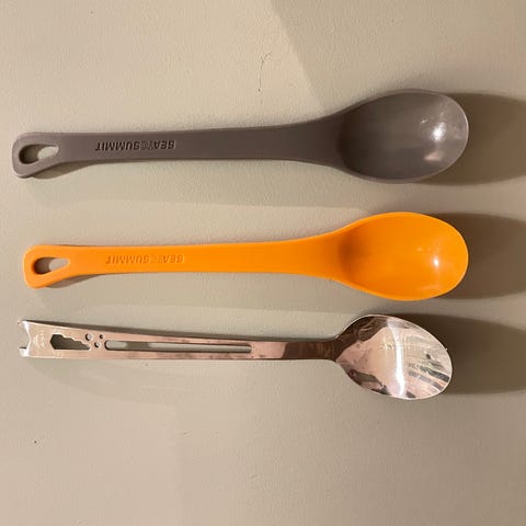 Uusia, vielä pakkauksessa olevia titaanisia pitkävartisia lusikoita. Useampia kappaleita myynnissä (yksillä postikuluilla). Pituus 21,5cm. Paino n. 19g. Widesea-merkkisiä.