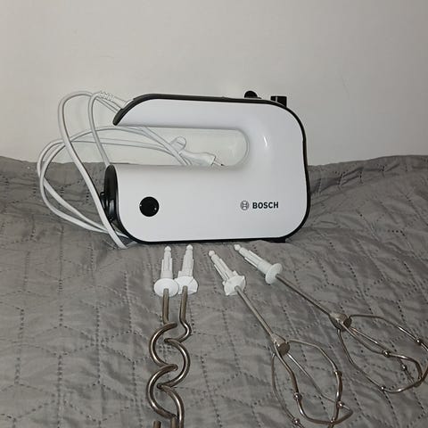 toimiva ja siistissä kunnossa oleva sähkövatkain. mukana kahdet eri sekoituspäät