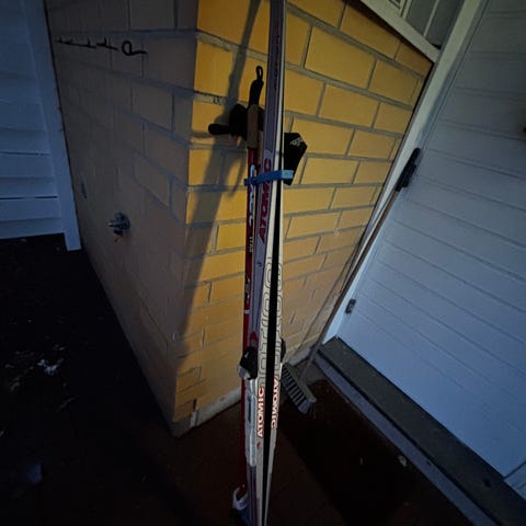 Lasten sukset. Suksien pituus 175cm sauvojen pituus 125cm. Sopii noin 140cm pitkälle hiihtäjälle.