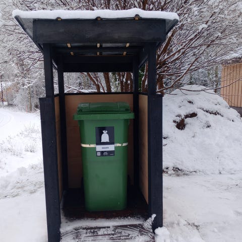 Kuvan mukainen roskakatos. Sisä mitta 100cmx100cm. Kotiin tuotuna lähi alueelle hinta.