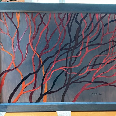 Ojan yli hyppäävä ilves. Öljyväri kankaalle. 70x50. Taiteilija myy. Voin lähettää!