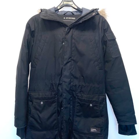 Myynnissä kuvassa oleva uusi musta EVEREST Goryu Parka, Takki on kokoa S ja siinä reilu mitoitus menee M-L kokoa käyttävälle.