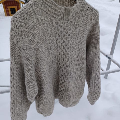 Käyttämätön valkoisesta villalangasta tehty neulepusero, jossa korkea kaulus. Paksua neuletta. Edessä ja takana samanlainen kuvio. Koko naisten M-L. Postitus onnistuu. Maksu käteisellä tai Mobilepaylla.