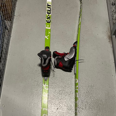 Peltosen paljon elämää nähneet NNN siteen sukset koossa 130cm. Exelin 105cm sauvat. SnowStorm koon 34 NNN siteen monot. Suksien pohjissa naarmuja. Kotipihaan ja lähi laduille vielä erinomaisesti sopiva setti.