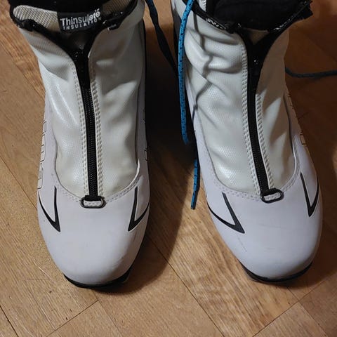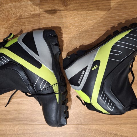Koko 41, väriltään musta ja punainen. Valmistettu kestävistä materiaaleista ja suunniteltu tarjoamaan tukea ja mukavuutta hiihtoon. Pohjassa kiinnitysjärjestelmä, nnn siteet.