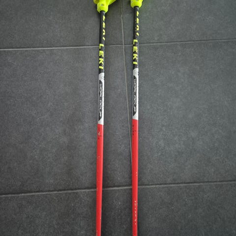 LEKI kisasauvat junnulle, 100cm. LEKI Trigger Vario Strap:eillä, jotka siis helppo irrottaa ja irtoavat myös kaatuessa. Käytetty 2 talvena, ja aika vähän (liian vähän)