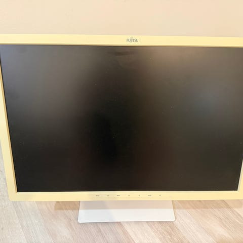 Fujitsu E24-9 Touch, kosketusnäyttö24 sopii erilaisiin käyttötarkoituksiin kuten työskentelyyn ja viihteeseen. Näyttö on liitettynä oheislaitteisiin, jotka näkyvät kuvassa.