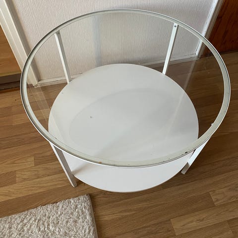Sohvapöytä kuin uusi. Sivupöydässä pieni jälki pöytälevyssä.