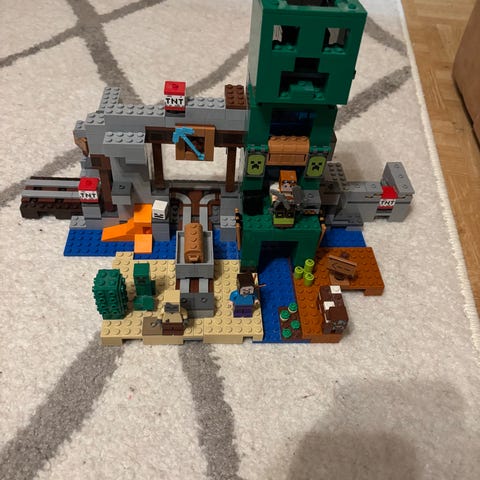Laatikollinen Legoja ja alustoja sekä hahmoja, pääasiassa Lego Minecraft, Star Wars, Ninjago
