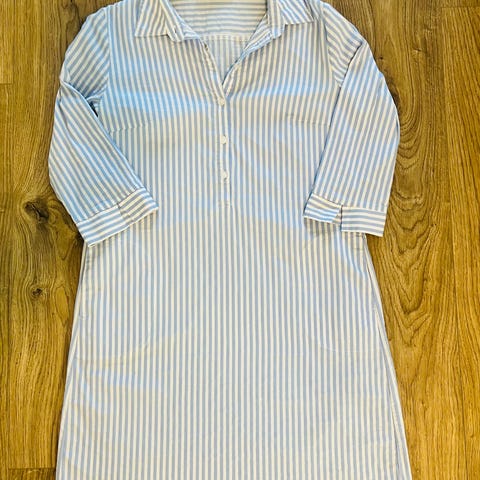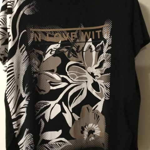 Ihanan ilmava ja laskeutuva kangas. Malli loivasti A -linjainen. Todella kauniit värit ja kuviot. Valitettavasti koko ja materiaalilaput leikattu sivusaumasta pois. Oletettu koko M /40. Selkäpituus 66cm. Hiha hieman vajaamittainen, hihansuussa huomaamaton kuminauharypytys.