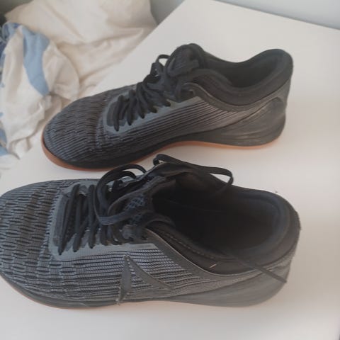Vähällä käytöllä olleet treenikengät salille, tanssitreeneihin, sisäpeleihin yms. Kevyet ja mukavat jalassa. Kengissä hieman pieniä värikkäitä maaliläikkiä (näkyvät kuvissa).