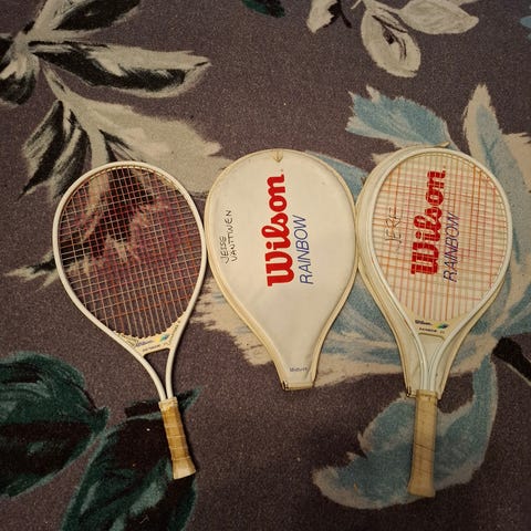 2 kpl lasten Dynamics tennismailat, toisen grip vaatii huoltoa