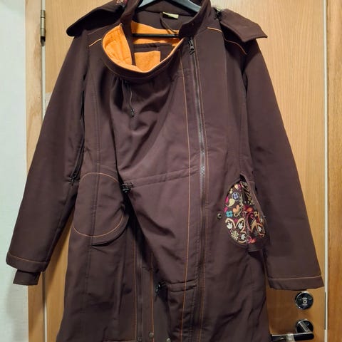 Lämmin ja soveltuu kantamiseen talvella. Paneelin voi laittaa eteen tai taakse.