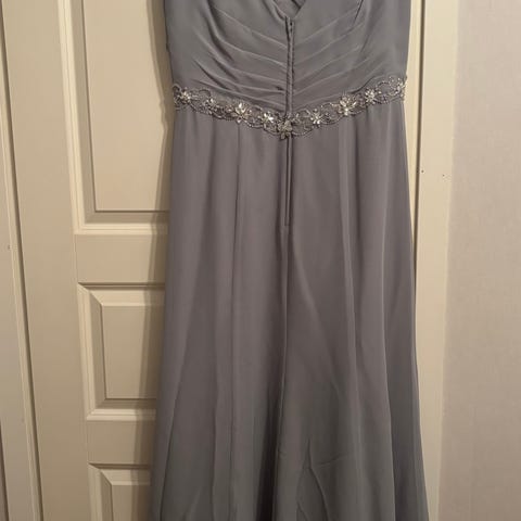 Metsänvihreä ilta- tai juhlapuku koossa 38. Ollut kerran käytössä kaason pukuna. Pesty käytön jälkeen. Mekossa on muunneltavat olkaimet, jotka voi laittaa haluamallaan tavalla. Helmassa halkio. Takana vetoketju.