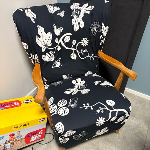 Vintage nojatuoli, nouto Tampereen Tammelasta.