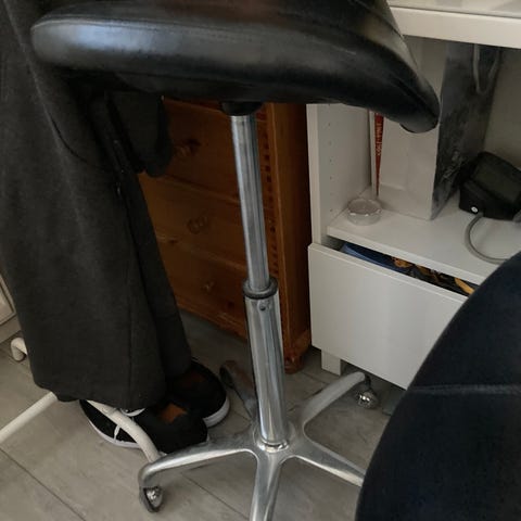 Istuimen päällinen nahkaa ja hiukan siksi päällinen elänyt, mutta ei haittaa mitenkään käyttöä eikä tunnu istuessa.