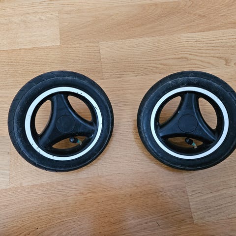 Hyväkuntoiset eturenkaat Petite Cherie Avion Air -matkarattaisiin.