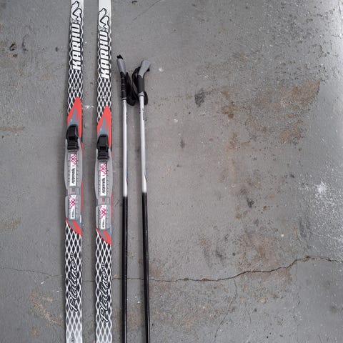 Myydään 107cm pitkät sukset ja sauvat (n.89cm).
