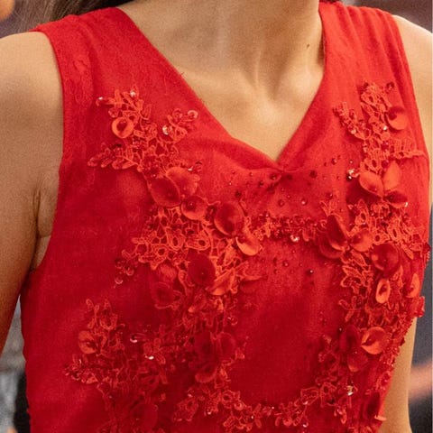 Kaunis vaaleanpunainen ilta- tai juhlapuku. Sopii erinomaisesti wanhojen tansseihin tai häihin. Mukana myös olkalaukku