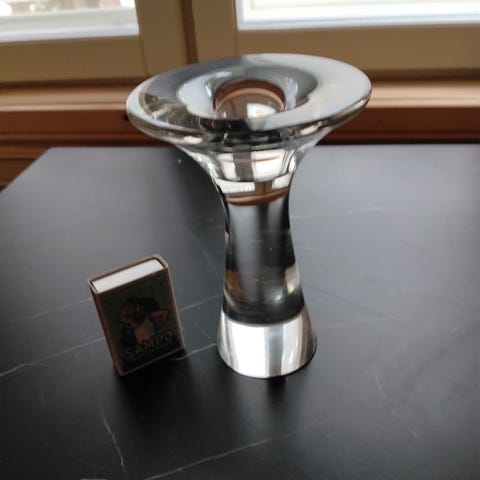 Kaunista muotoilua, lasinen kynttilänjalka, signeerauksella Tapio Wirkkala.