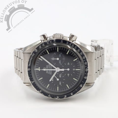 Tarjolle huippukunnossa oleva, juuri täyshuollettu Moonwatch. Klassikko malli joka ei turhia esittelyitä kaipaa. Selkeälukuinen taulu ajanotolla, hesaliitti-lasikkeella, mustalla tachymeter kehällä, teräksisellä kuorella sekä rannekkeella. Koneistona toimii Omega 1861- manuaalikaliiperi. Full set, kellon takuukortti on päivätty kotimaisen jälleenmyyjän toimesta 2/2002. Lisäksi kello on täyshuollettu Omegan virallisessa huollossa 1/2026. Tästä edullisesti klassikkoa rannetta koristamaan.