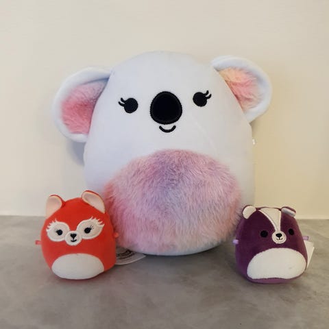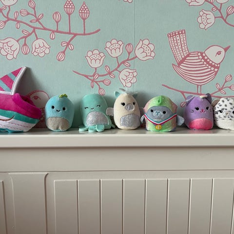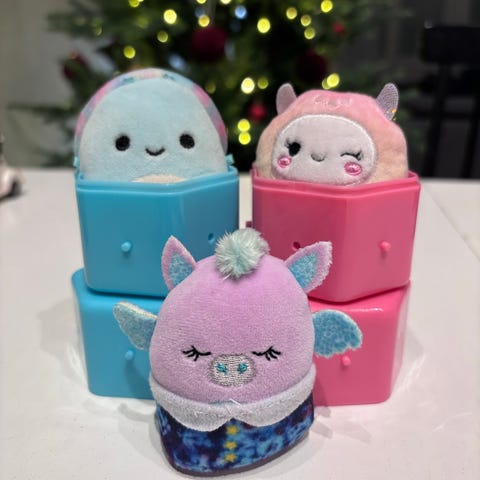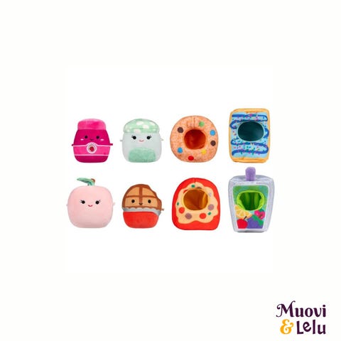 Squismellows Micromallows paketti, jossa kuusi hahmoa. Yksi otettu pois paketista, muut vielä kiinni paketissa. Uusi, käyttämättömät.