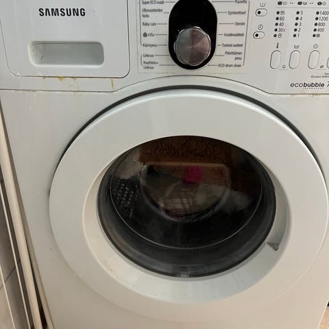 Samsung -merkkinen edestä täytettävä pesukone. 7.0kg tilavuus ja sisältää erilaisia pesuohjelmia mm. puuvilla, synteettiset, denim, vuodevaatteet, päivittäinen pesu , käsinpesu, villa ja baby care. Pesukoneessa on digitaalinen näyttö ja pyörivä valitsin ohjelmien valintaan.