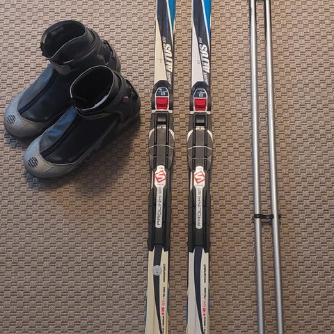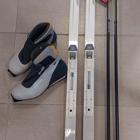 Todella hyvät pohjat suksissa, monot on lähes uudet ja rannetuellisissa hiilikuitusauvoissa kahvat on korkkia.