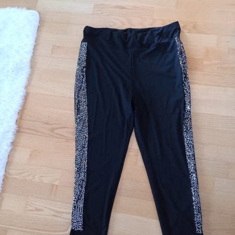 Vähän käytetyt leggingsit. Sivuilla hopea-valko raidat. Koko L/XL. Kuminauha vyötäröllä. Joustavat. Kapea malli. Paksumpaa materiaalia. Ei normi ohutta leggingsi materiaalia. 95 polyesteriä, 5% elastaania. Voin myös postittaa. Ostajalle postikulut