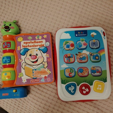 Mukava aktivointi lelu pienelle lapselle. Painaessa kuuluu painettavan eläimen ääntely, jos valitsee eläimet tai sitten musiikkia jos valitsee musiikin. Patterit toimivat yhä.